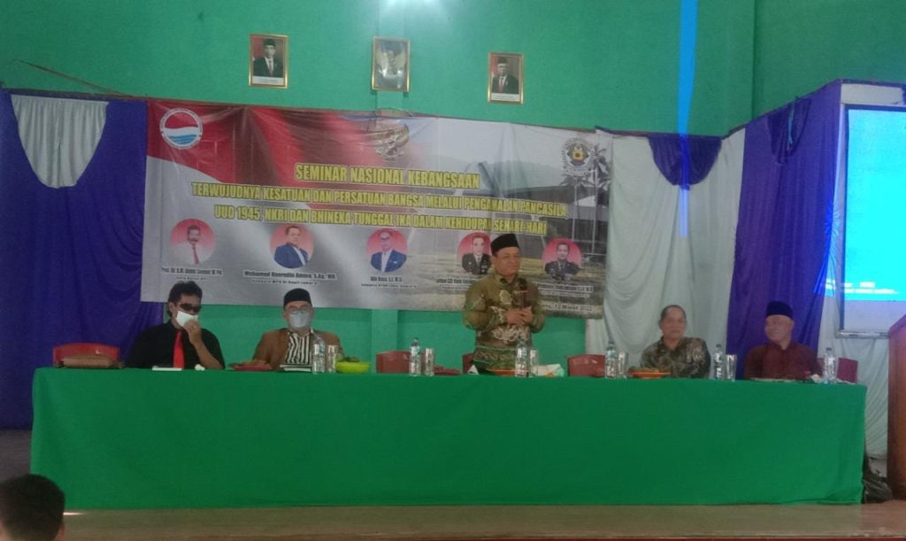 Hal tersebut dikemukakan anggota MPR RI, Muhammad Hoerudi Amin saat menggelar Sosialisasi Empat Pilar Kebangsaan di Aula Gd. PGRI Bungbulang, Minggu 20 Maret 2022.