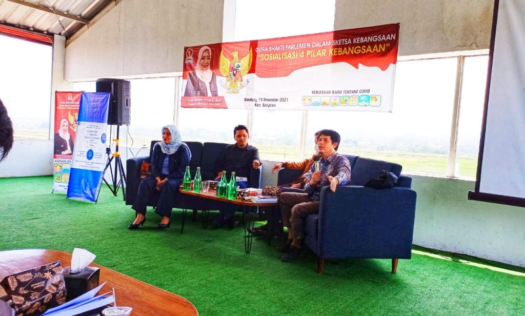 Tak terkecuali anggota DPRD Jawa Barat, Hj. Thoriqoh Nashrullah Fitriyah, S. T., ME.Sy yang mengisi sosialisasi empat pilar kebangsaan dengan sekaligus mengangkat kegiatan bedah buku berjudul “Siasah & Demokrasi” karangan DR. Latief Awaludin dengan Pembanding DR. Yudi Permana M.M. di salah satu caffee di Kawasan Banjaran Kabupaten Bandung, Senin 13 Desember 2021.